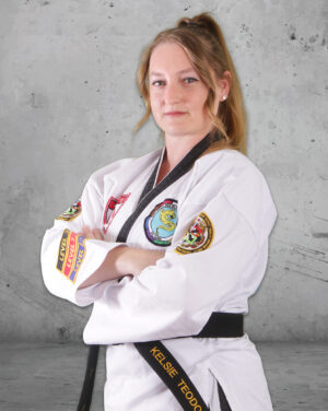 Kelsie Teodoro began her Taekwondo training in 2010 and is currently a 4th Degree black belt Certified Instructor and Level 3 Certified Judge with ATA. Mrs. Teodoro holds several State and District Champion titles in Forms, Combat Sparring, and Traditional Sparring, and has competed multiple times in ATA’s Tournament of Champions in pursuit of a World title. She was named Region 103A’s Black Belt of the Year in 2015 and Instructor of the Year in 2025. Mrs. Teodoro has over 15 years of teaching and coaching experience in a variety of sports, including Taekwondo, swim, and waterpolo. She also holds a Master’s Degree in Criminology and Criminal Justice, as well as other higher education degrees in Anthropology, Business, and Social & Behavioral Sciences.